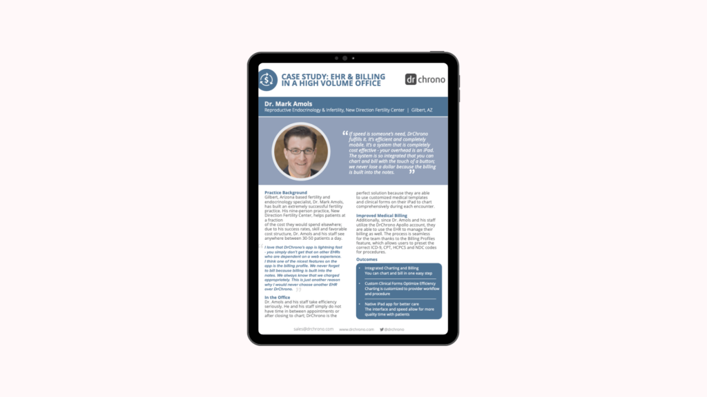 We also produced videos featuring our most avid users that were relevant to specific practice areas, like urgent care, internal medicine, radiology and others. A series of case studies were also produced to showcase some of the features doctors and other medical professionals loved the most about drchrono.